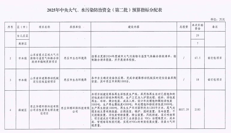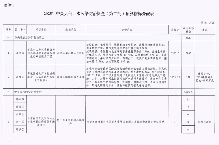 2025年中央大气、水污染防治资金(第二批)预算指标分配表